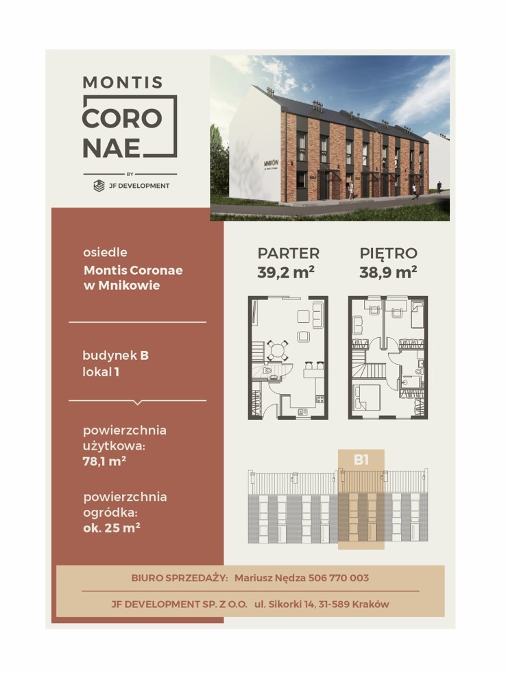 Montis Coronae to osiedle składające się z dziesięciu lokali mieszkalnych w zabudowie bliźniaczej znajdująca się w południowym pasie Jury Krakowsko – Częstochowskiej. Budynki to połączenie nowoczesnej architektury i energooszczędnych rozwiązań. Każdy budynek po za przestronnym salonem z aneksem kuchennym oraz trzema niezależnymi sypialniami posiada własny ogródek i miejsce parkingowe. Zamysłem architekta było stworzenie funkcjonalnych przestrzeni i jednoczesne nawiązanie formą elewacji do regionalnych tradycji z pierwszej połowy XIX w.